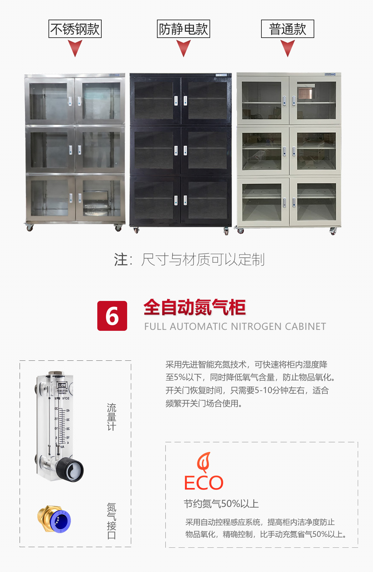節(jié)能氮?dú)夤袷抢玫獨(dú)鈦?lái)達(dá)到防氧化防潮目的柜體,氮?dú)夤駃具有送氮和排氣的通路這種控制方式,可真正做到對(duì)內(nèi)部含氧量的控制,有目的起到防氧化功能,同時(shí)也有更高的節(jié)氮功能。被廣泛應(yīng)用在微電子,半導(dǎo)體,新能源,國(guó)防,軍工行業(yè)的研發(fā)生產(chǎn)工序,用于各類貴金屬材料,半導(dǎo)體器件和敏感器件的防氧化保存。